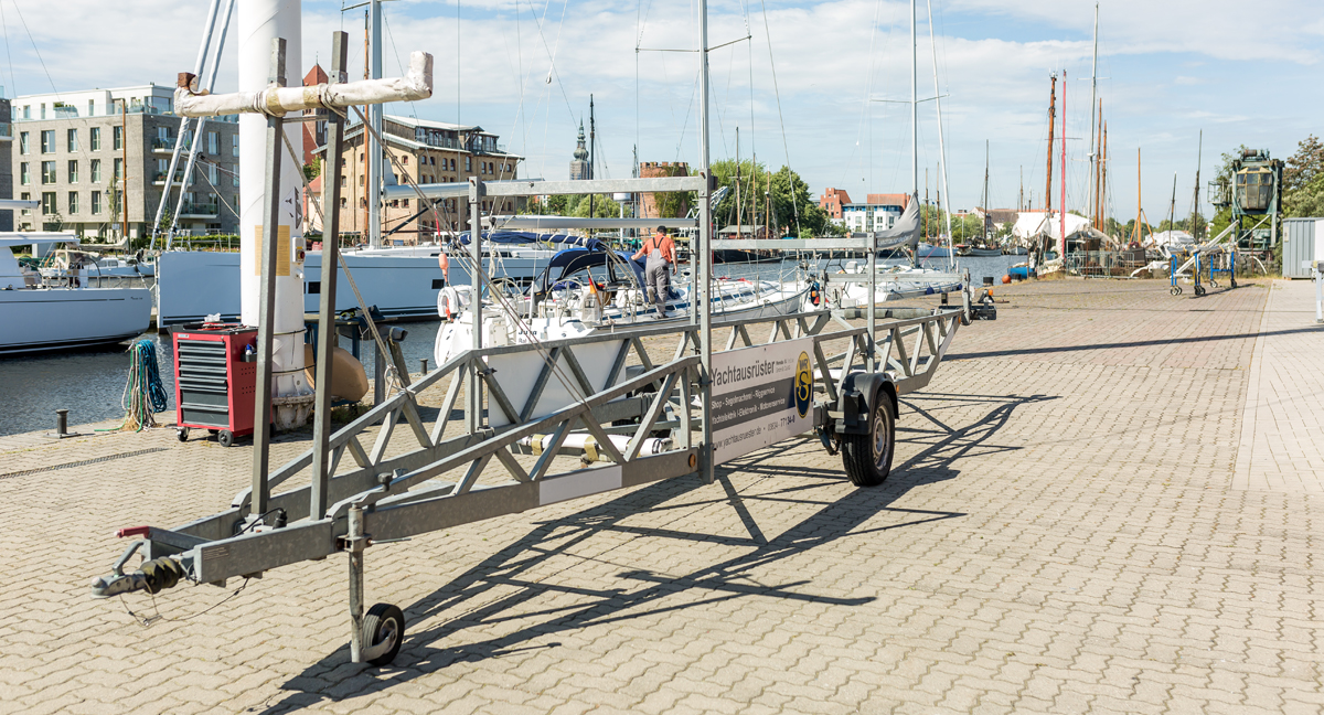 Planen Sie den Transport eines Segelmasts? Mit unserem zugelassenen Mastenanhänger haben Sie das passende Werkzeug an der Hand – schnell verfügbar und direkt einsatzbereit.